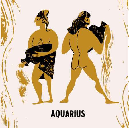 Horoscope and astrology. The zodiac sign Aquarius. Aquarius man with a vase. A woman pours water from a vase. Mythological vector illustration.