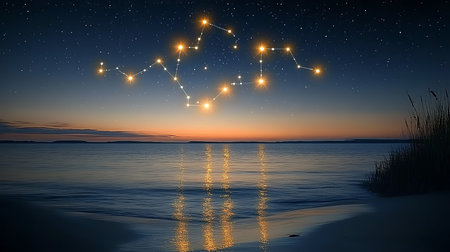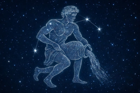 Glittering aquarius constellation forming water bearer in starry sky. concept of astrology, cosmic art, zodiac sign, celestial body, astronomical illustration.