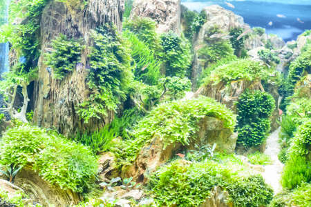 Picture of fish tank decoration scenery Underwater plants and trees are beautifully decorated amidst nature.