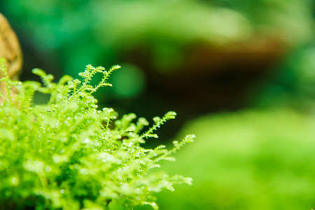 Green world of the terrarium. Natural background Natural habitat. Home hobby.