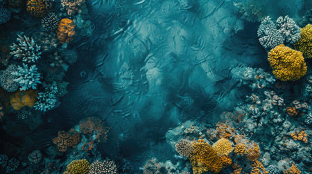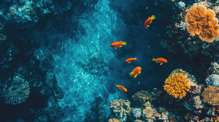 Cinematic view of vibrant coral reef teeming with life and color from above