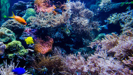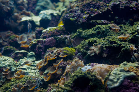 Colorful tropical fish in the aquarium. Underwater world of coral reef