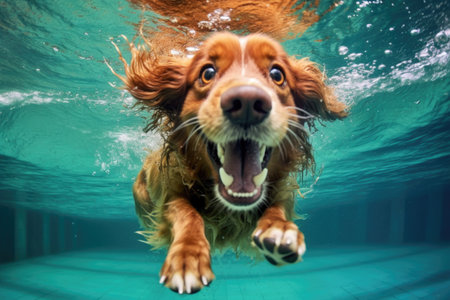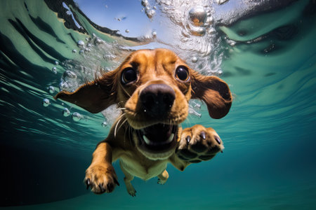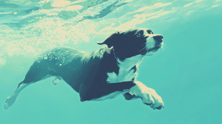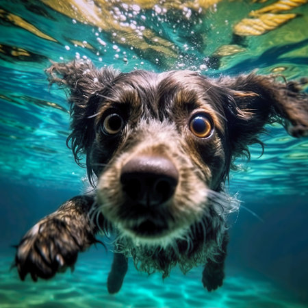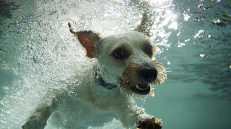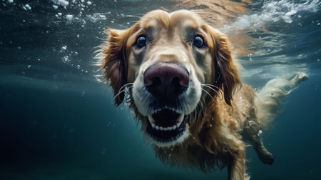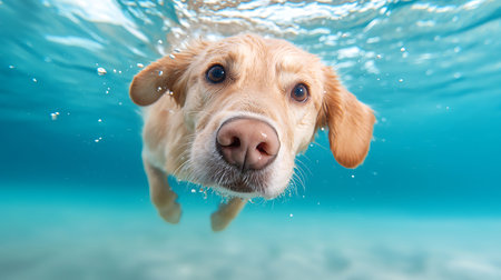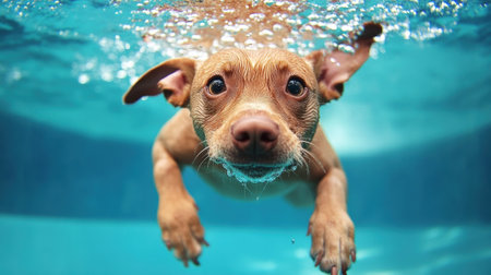 Animal. Cute dog swimming underwater. Pets. Generative AI