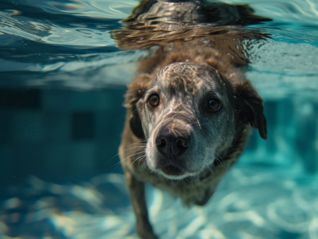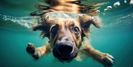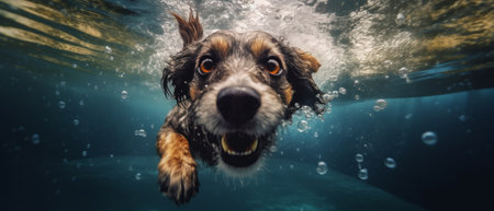 Dog swim gracefully underwater. Generative AI