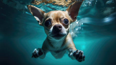 Chihuahua dog underwater. Generative AI