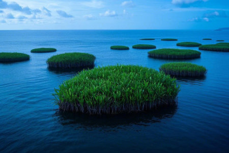 The tranquil beauty of an oasis on the sea, the ecological wonder of a floating island
