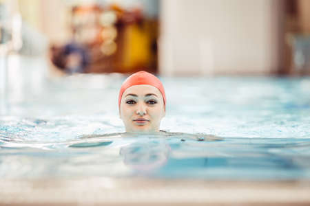 Young woman swimming in the pool. Sport and healthy lifestyle concept.