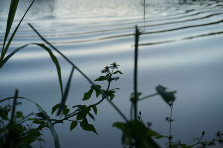 Plenty lakeside, Moisture pond at sunset with dragonfly, shellfish.