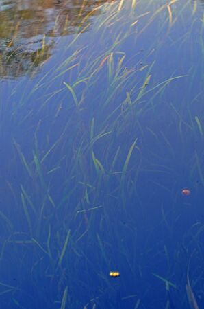 Algae and aquatic plants swim underwater