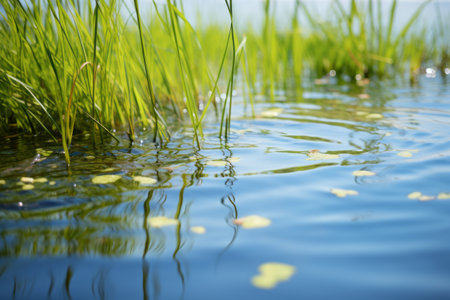 Natures Reflection: Capturing the Serene Beauty of Grass on the Pond --ar 3:2