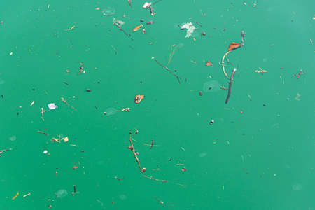 Plastic waste in lake. Ocean pollution, marine debris. Marine litter. Garbage plastic bottle in water of pond. Plastic marine debris. Marine plastic pollution. Microplastics groundwater poisoning.