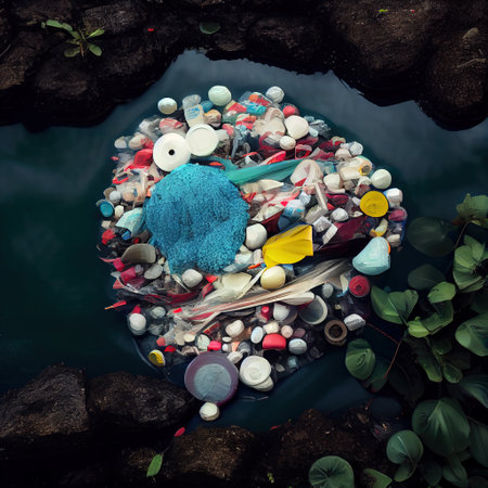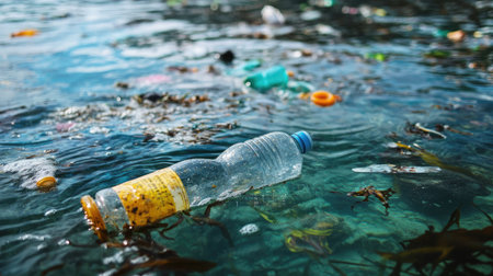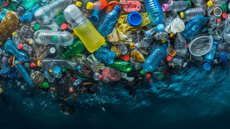 A stark depiction of plastic waste floating in ocean waters highlighting environmental pollution. This image conveys the critical need for conservation efforts and recycling initiatives.