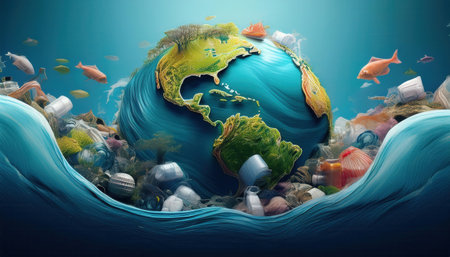 A Plastic Pollution Crisis in Ocean - Environmental Awareness Concept