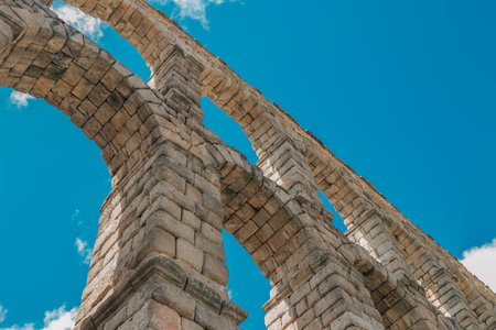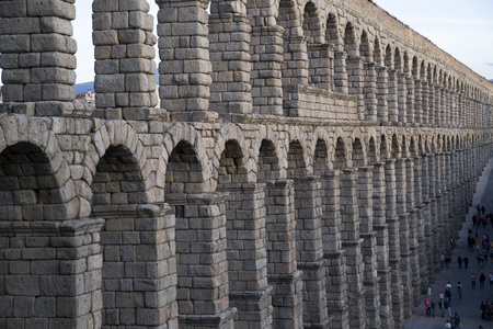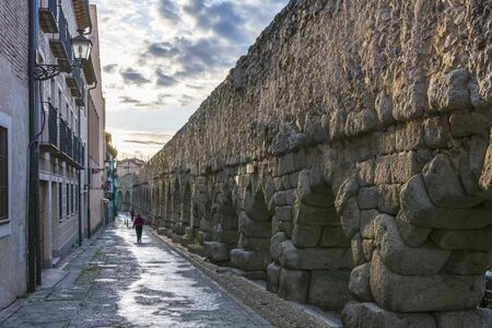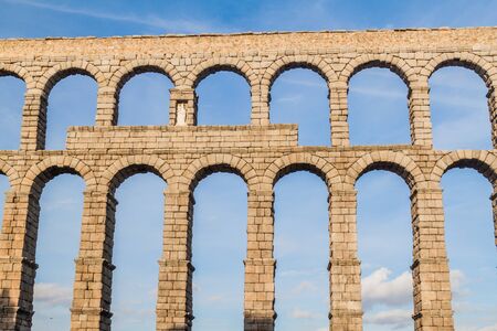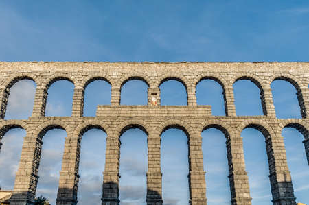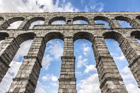 Roman aqueduct in Segovia, Spain. Famous Romanesque architecture is located in the Spanish province of Castilla.