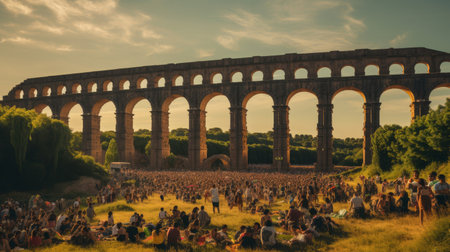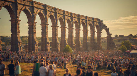 Roman aqueduct's completion celebration citizens gathered to celebrate