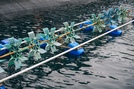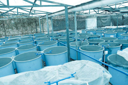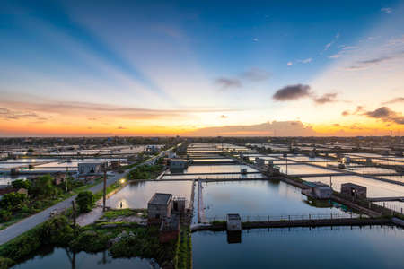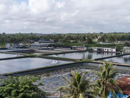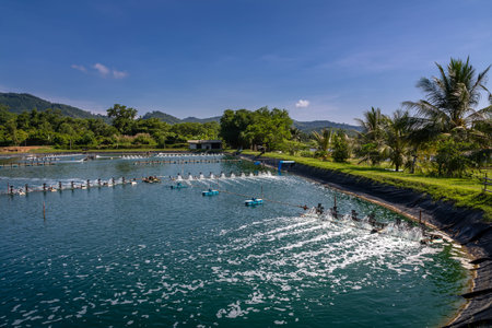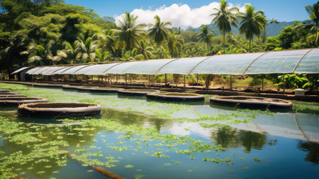 shrimp farm with aquaculture ponds, showcasing the sustainable production of seafood.