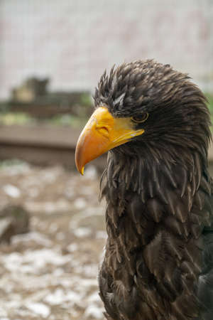 The Stellers sea eagle is a very large bird of prey in the hawk family. Background with selective focus and copy space