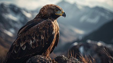 Majestic golden eagle perched on a rocky outcrop, surveying its mountainous territory with keen eyes