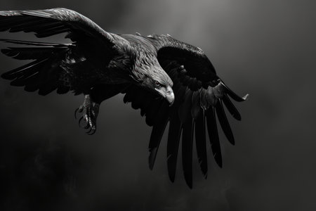 Fierce Black eagle bird sparkles. Avian raptor. Generate Ai