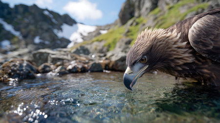 close-up of an eagle preening its feathers, created with generative ai