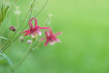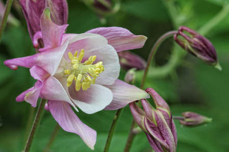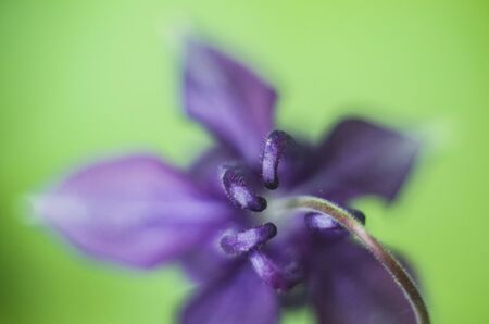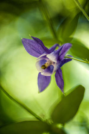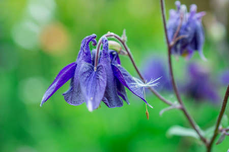 Macrophoto Aquilege on a blurry green background. A photo of plants.