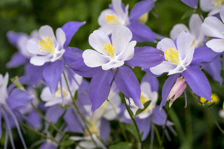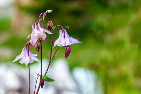 Columbine or Aquilegia beautiful flowers blossoms in the flower garden.
