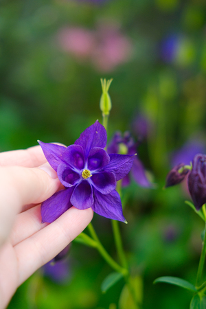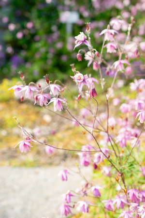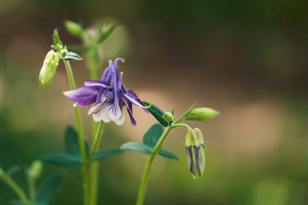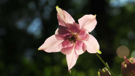 Aquilegia flower elves that blooms outdoors in beautiful summer day