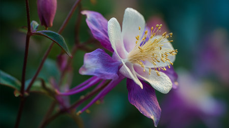 Elegant Columbine Flower: A Study in Purple, White and Yellow