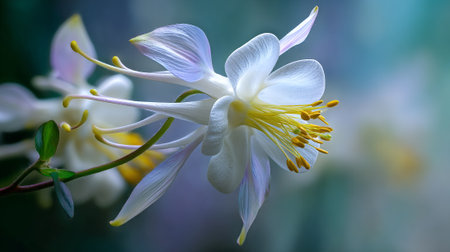 Elegant White Columbine Flower Displaying Delicate Petals and Yellow Stamens