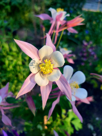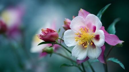 Gentle Beauty: Pink and White Columbine Flower in Bloom