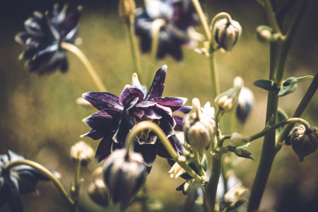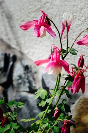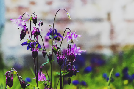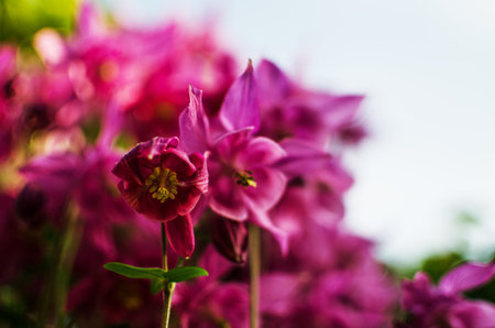 Columbine flowers in sun shine close up