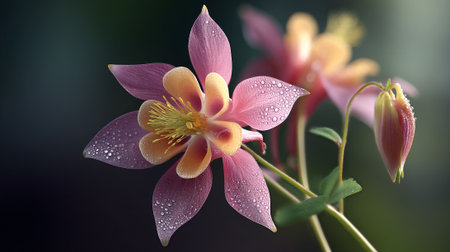 Dew Kissed Columbine: A Symphony of Pink, Peach, and Delicate Droplets