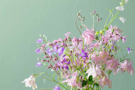 wild flowers on background green wall