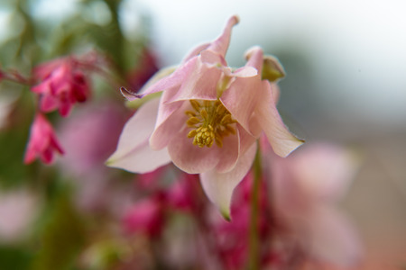 Aquilegia Origami or Pink Columbine Flower, in the garden.