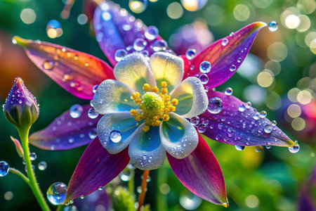 Water drops on a columbine (Aquilegia) flower