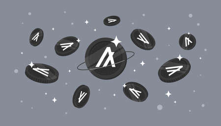 Algorand (ALGO) coins falling from the sky. ALGO cryptocurrency concept banner background.