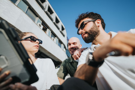 Successful Business Team Discussing Project Details Outdoors