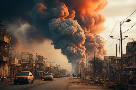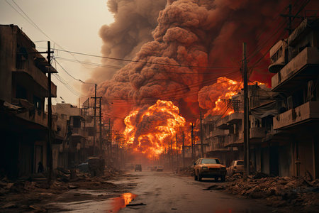 A Israel vs Iran War Scene Soldiers, Tanks, Explosion, Nuclear Bomb Attack, Missile Strike, World War 3 Concept, Fire, Conflict, Global Tensions