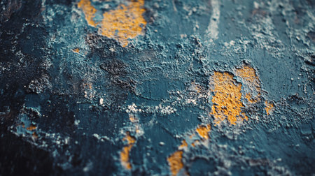 Blue and yellow wall with a lot of texture. The blue is the dominant color and the yellow is scattered throughout the wall. The texture of the wall gives it a rough and aged appearance