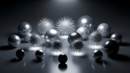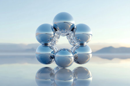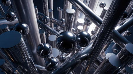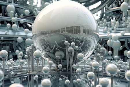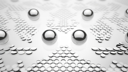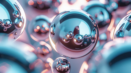 high quality illustration, metallic spheres in artistic pattern, futuristic chrome design for technology background