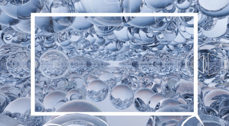 3d rendering, abstract background with glass balls, square frame.