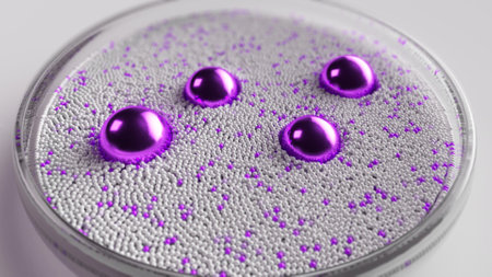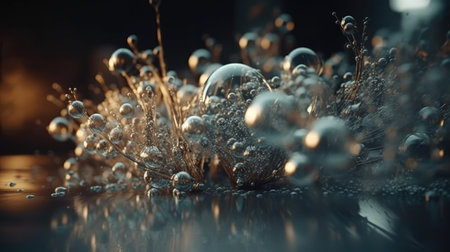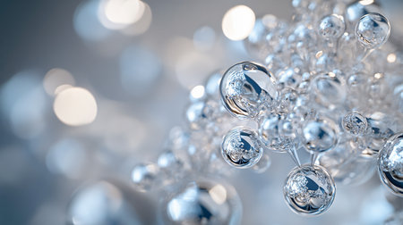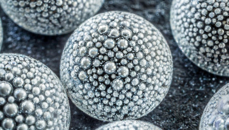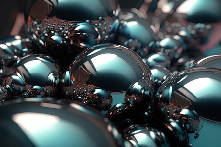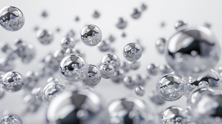 Dfgdguh showing cluster of reflective metallic spheres with bubbles. High resolution image suitable for...
