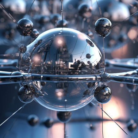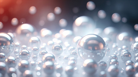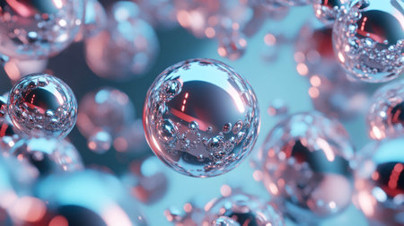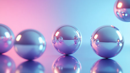 Abstract 3D spheres with reflective surfaces, creating a sense of depth and realism.
