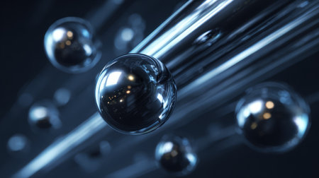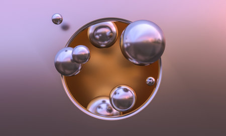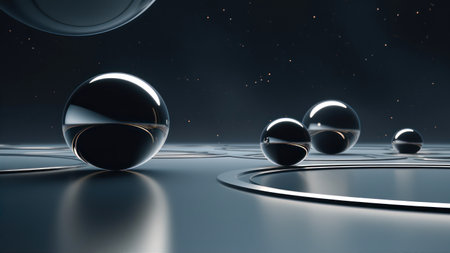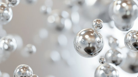 3D Render of Smooth, Floating Chrome Spheres A futuristic composition of glossy chrome spheres of various sizes floating in an