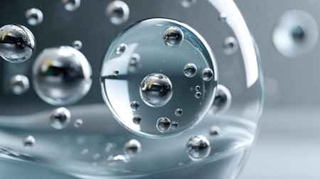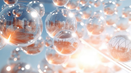 A group of transparent spheres in the air