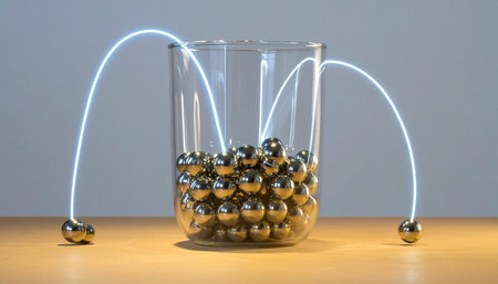 A group of shiny balls are arranged in a circle, AI