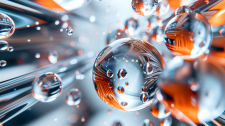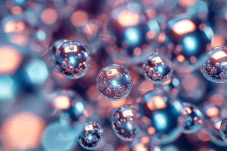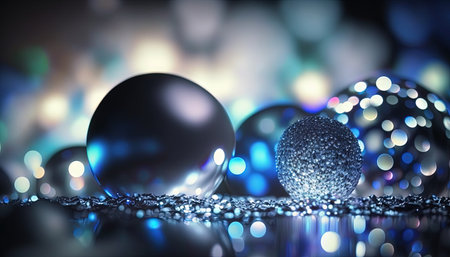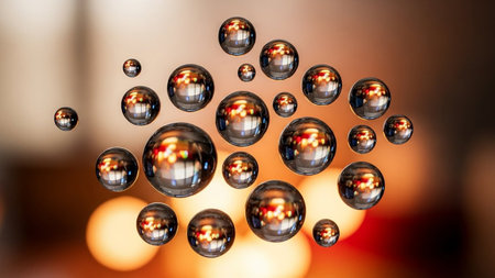 Abstract 3d rendering of shiny glass balls with bokeh background.