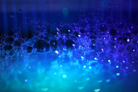 Abstract background, macro photography of foam and water with gradient background. Molecule multicolor background