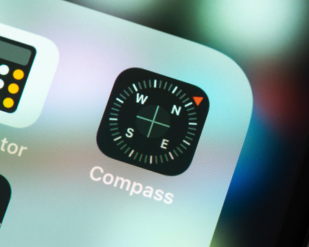 BAYONNE, FRANCE - CIRCA JANUARY 2021: Compass app icon on Apple iPhone screen.