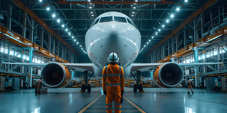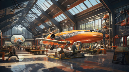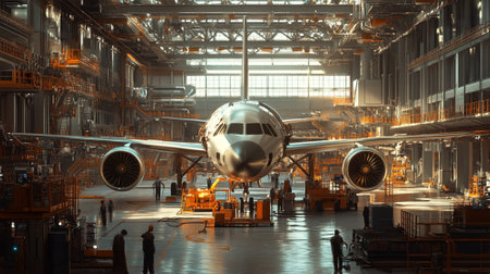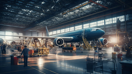 Plane assembly plant. Plane manufacturer. Plane factory. Generative AI